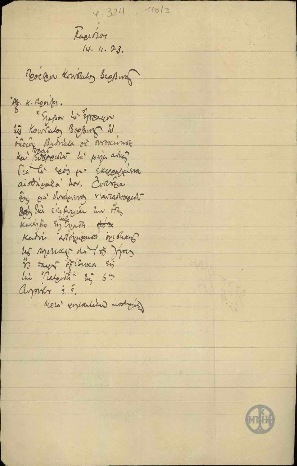 | Χρονολογία | 1923 Νοέμβριος 10 |