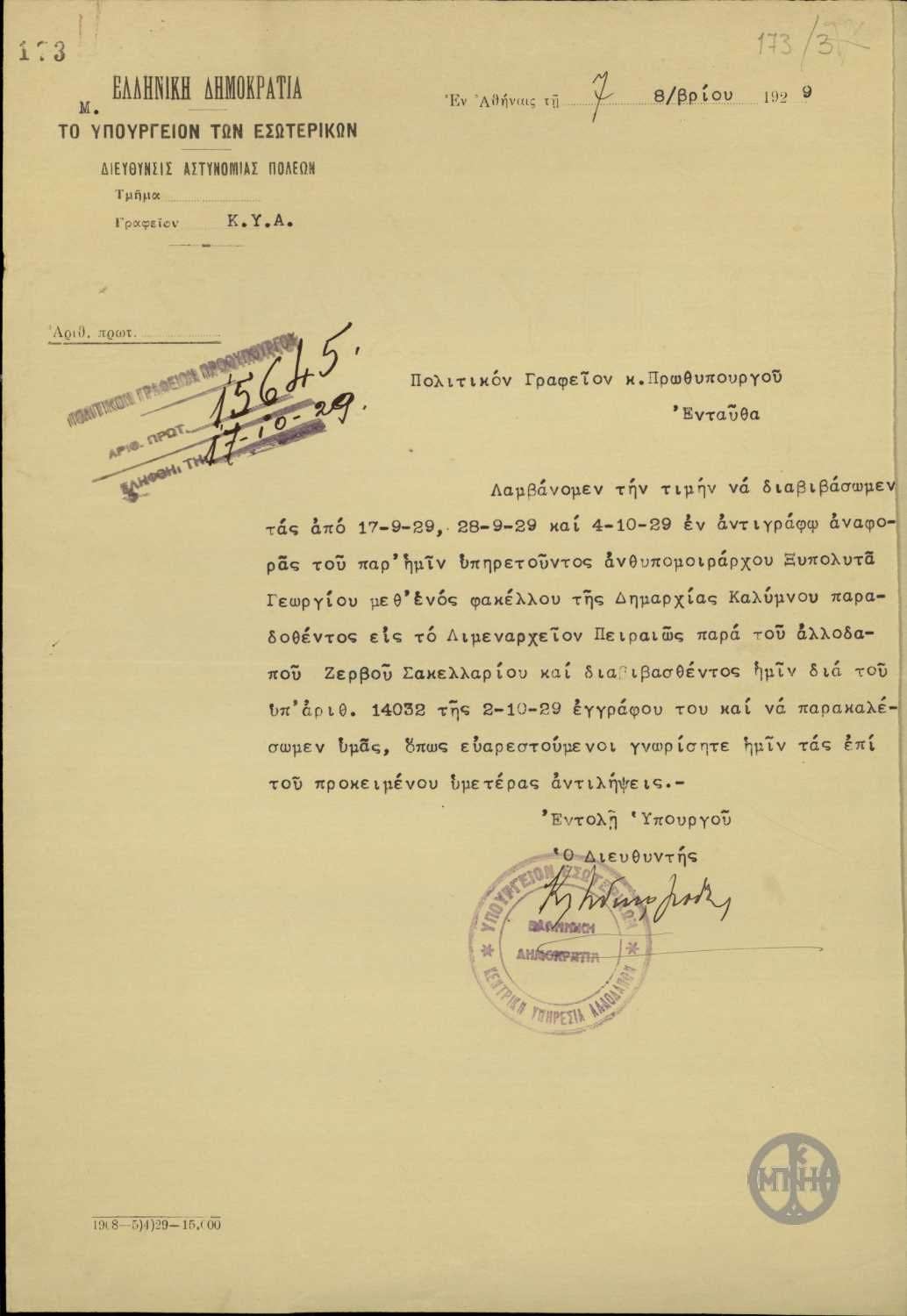 | Χρονολογία | 1929 Οκτώβριος 5 |