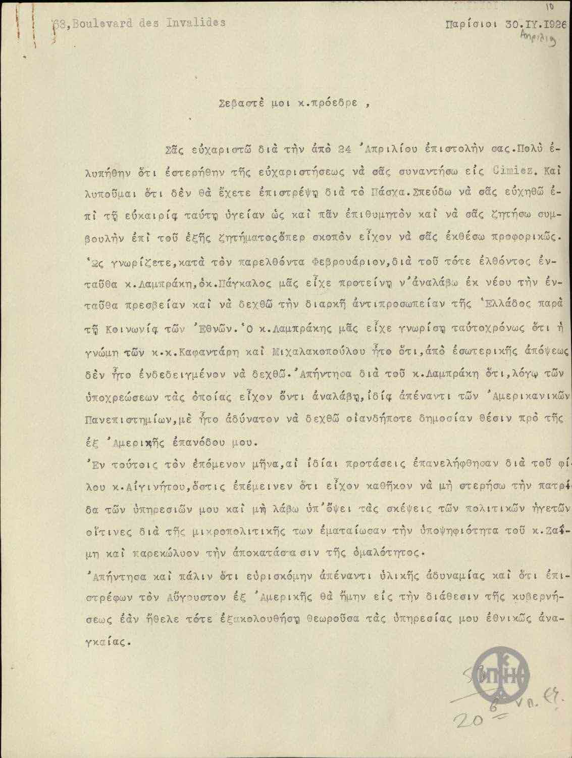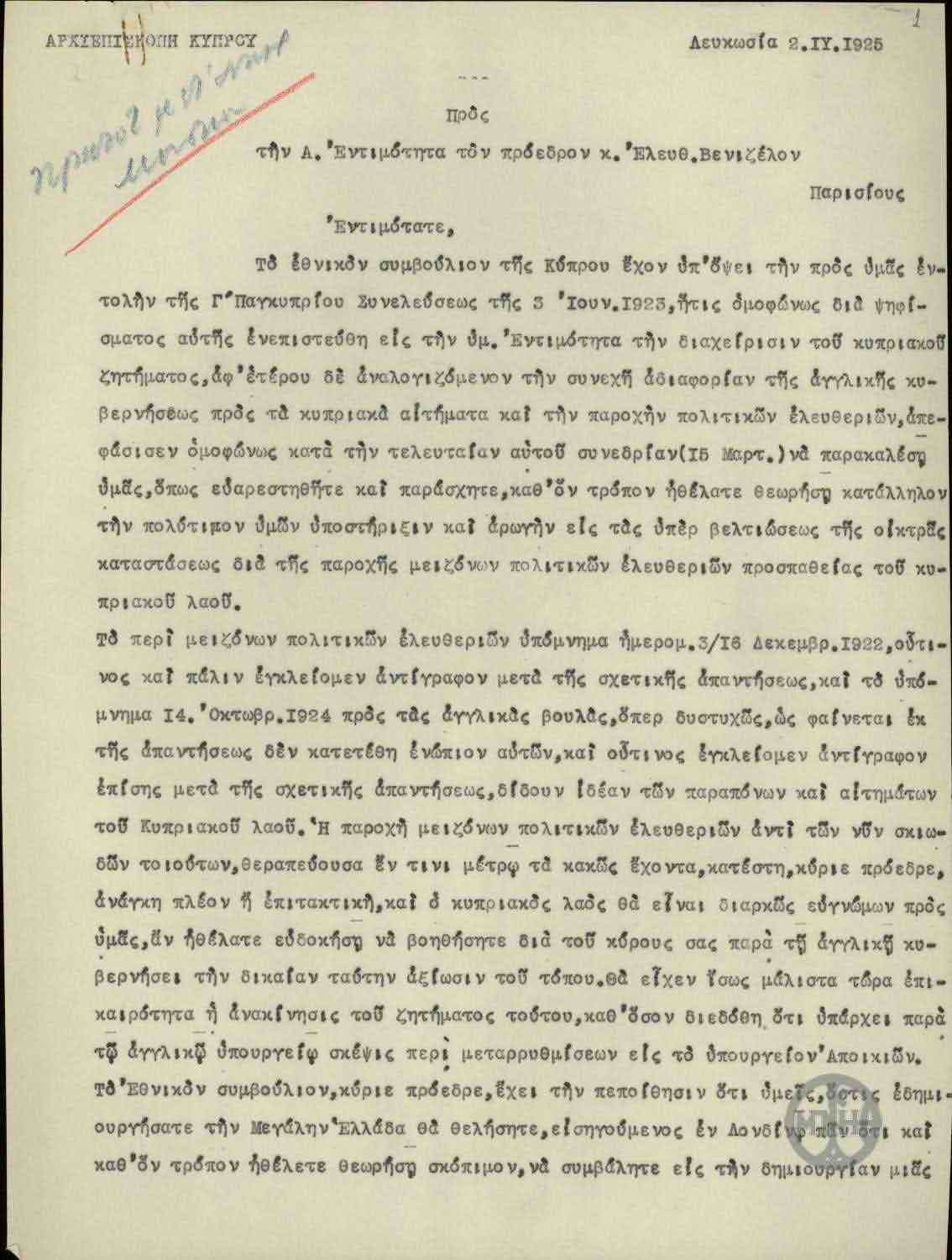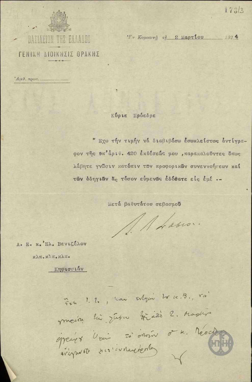 Ψηφιακό αρχείο Ελευθερίου Βενιζέλου