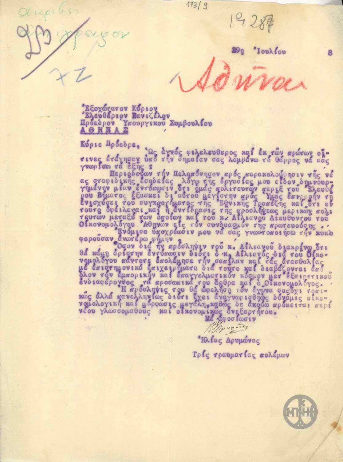 Ψηφιακό αρχείο Ελευθερίου Βενιζέλου