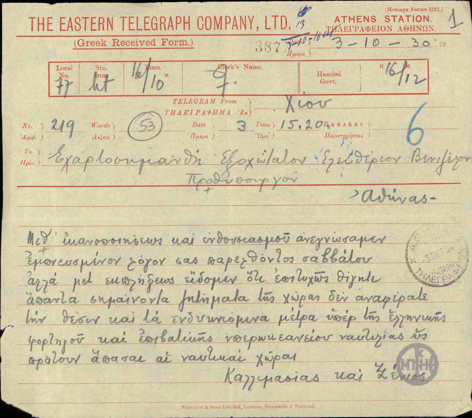 | Χρονολογία | 1930 Σεπτέμβριος 30 |