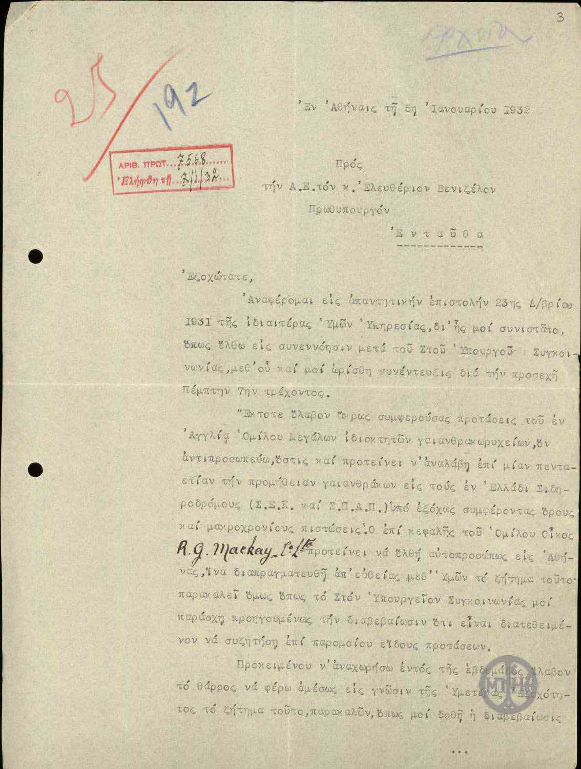 Ψηφιακό αρχείο Ελευθερίου Βενιζέλου