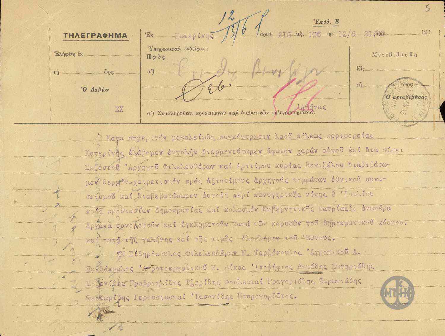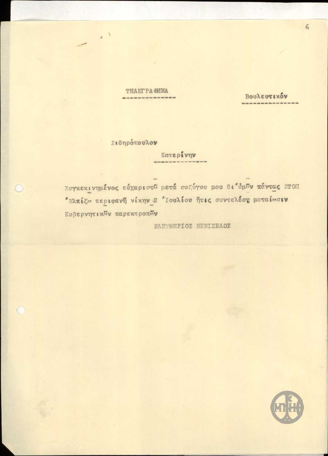 | Είδος | Τηλεγράφημα |