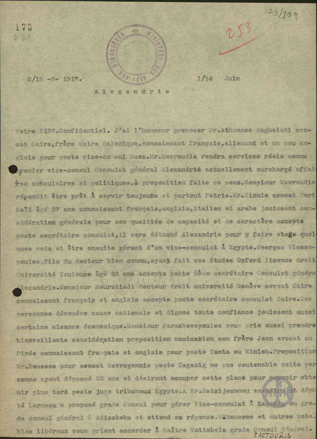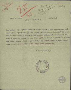 | ΤΙΤΛΟΣ | Επιστολή του Ελληνικού Εμπορικού Επιμελητηρίου Αλεξανδρείας (Αιγύπτου) προς τον Ελ. Βενιζέλο. |
