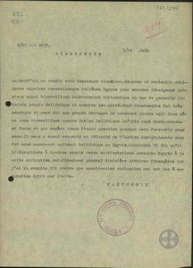 | ΤΙΤΛΟΣ | Επιστολή του Πατριάχη Αλεξανδρείας, Μελέτιου, προς τον Ε.Βενιζέλο σχετικά με το ζήτημα της καταβολής επιχορήγησης στο Πατριαρχείο Αλεξανδρείας. |