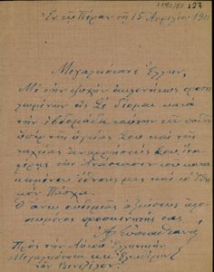 | ΤΙΤΛΟΣ | Επιστολή προς τον Ελευθέριο Βενιζέλο κοινωνικού περιχομένου με ευχές για το Πάσχα και για γρήγορη επάνοδο στο πολιτικό αξίωμα. |