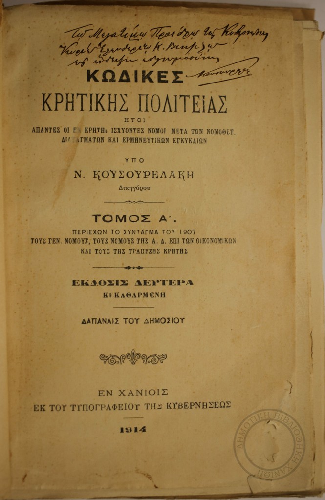 Κύριος Τίτλος Κώδικες κρητικής πολιτείας