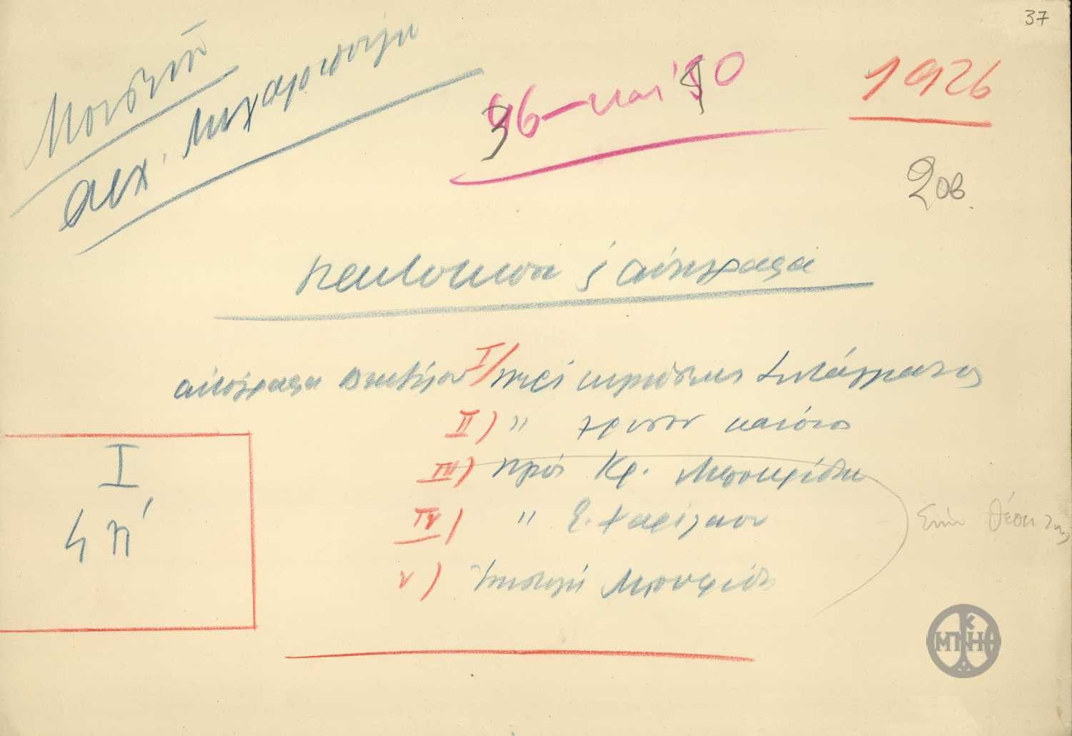 | ΧΡΟΝΟΛΟΓΙΑ | 1926 |