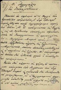 | ΤΙΤΛΟΣ | Σημειώσεις του Ε.Βενιζέλου για την εφημερίδα Κήρυξ. |