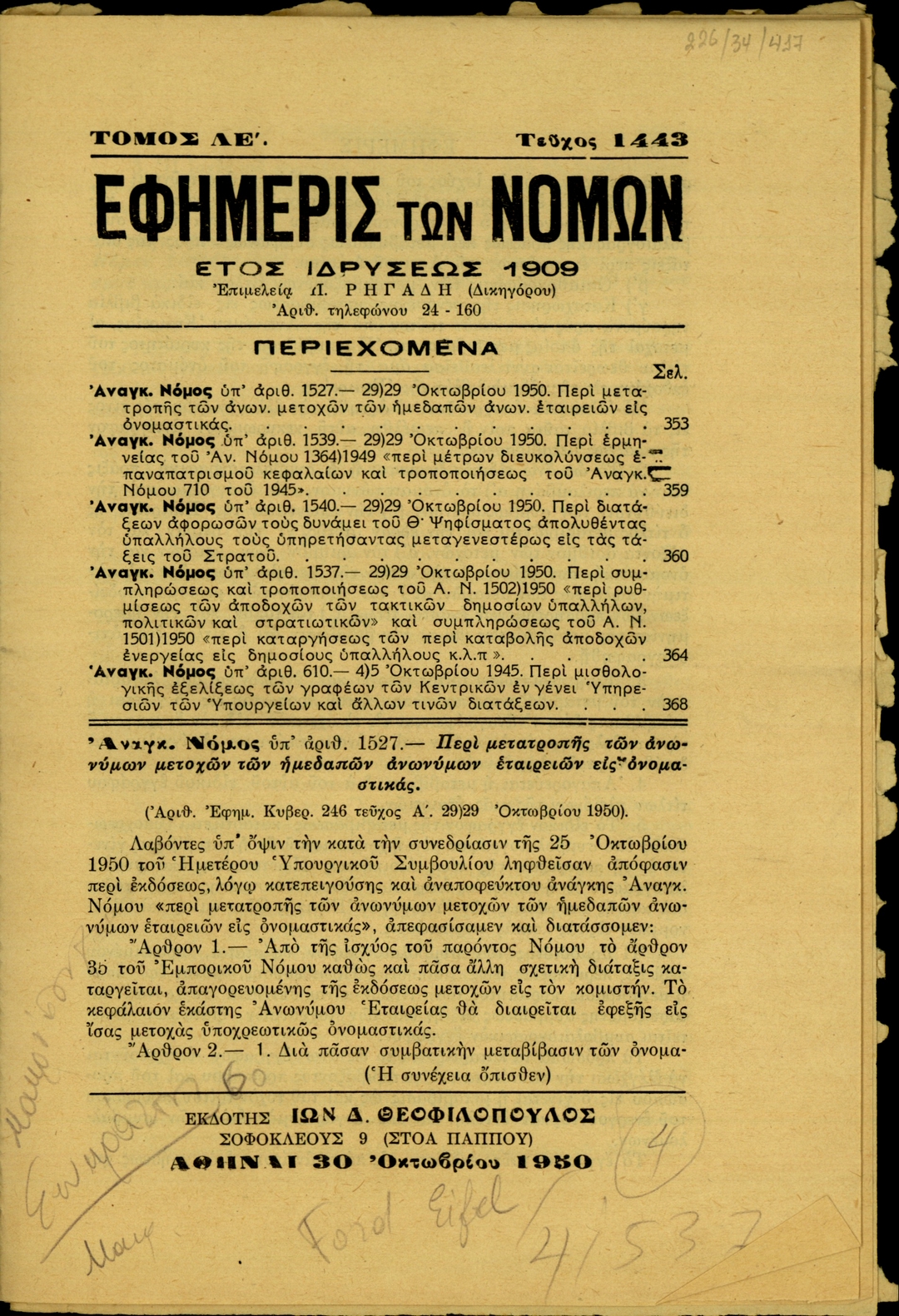 | Κύριος Τίτλος | Εφημερίς της Κυβερνήσεως |