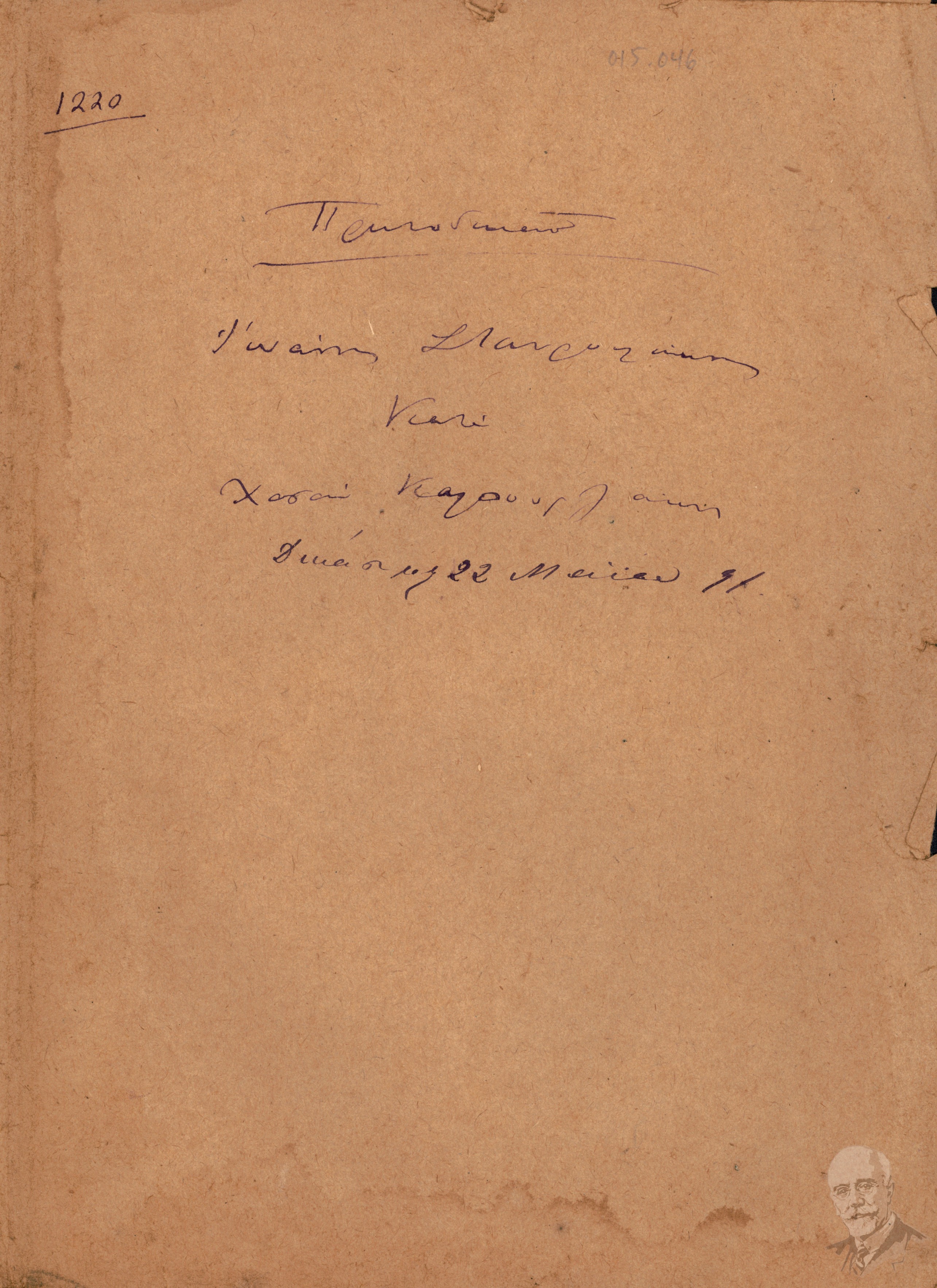 | ΤΙΤΛΟΣ | Φάκελος δικογραφίας με αριθμό 1220, Πρωτοδικείο, Ιωάννης Σταυρουλάκης κατά Χασάν Καλπουρτζάκη |