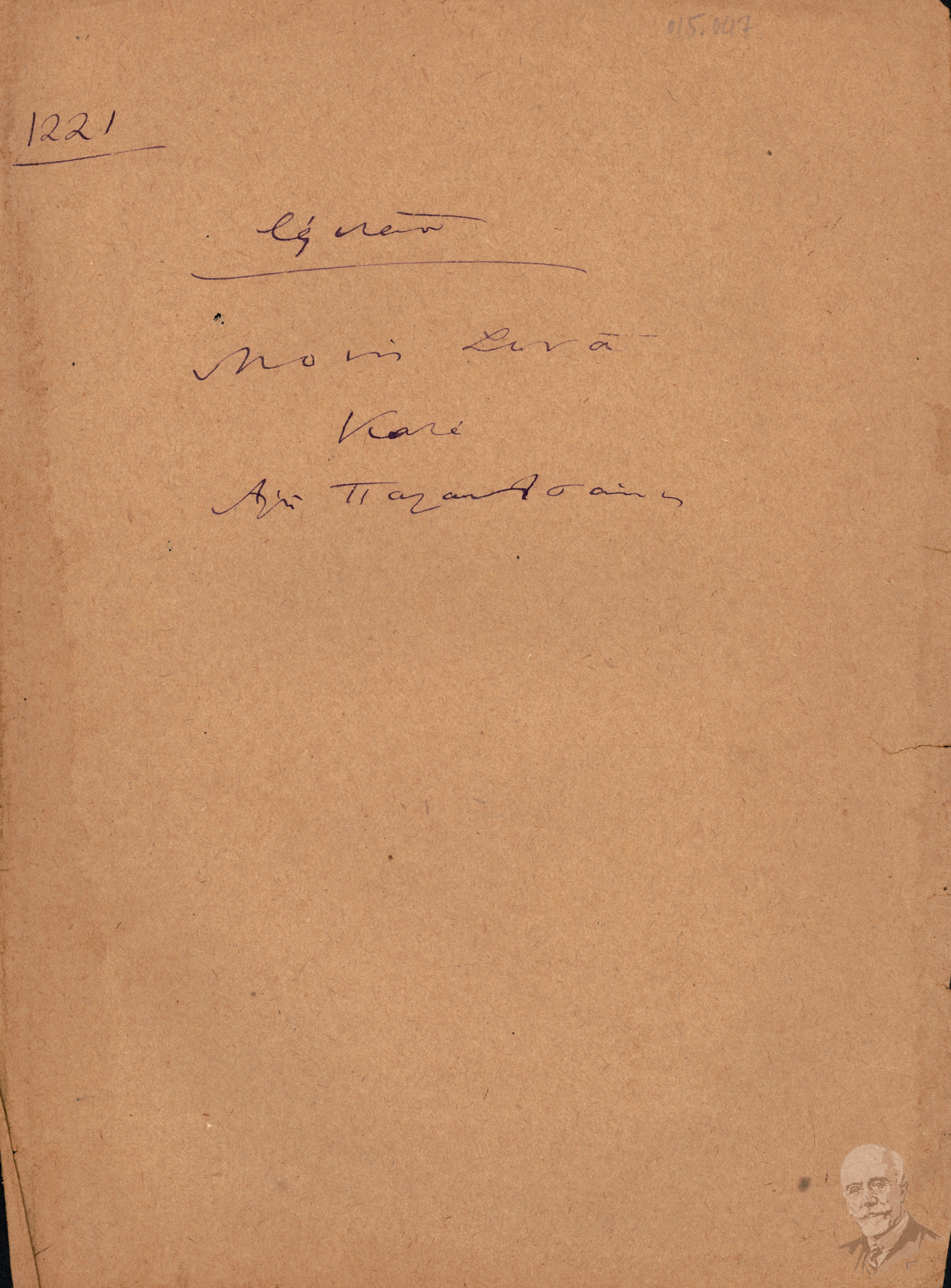 | ΤΙΤΛΟΣ | Φάκελος δικογραφίας με αριθμό 1221, Εφετείο, Μονή Σινά κατά Αλή Παλαιτσάκη. |