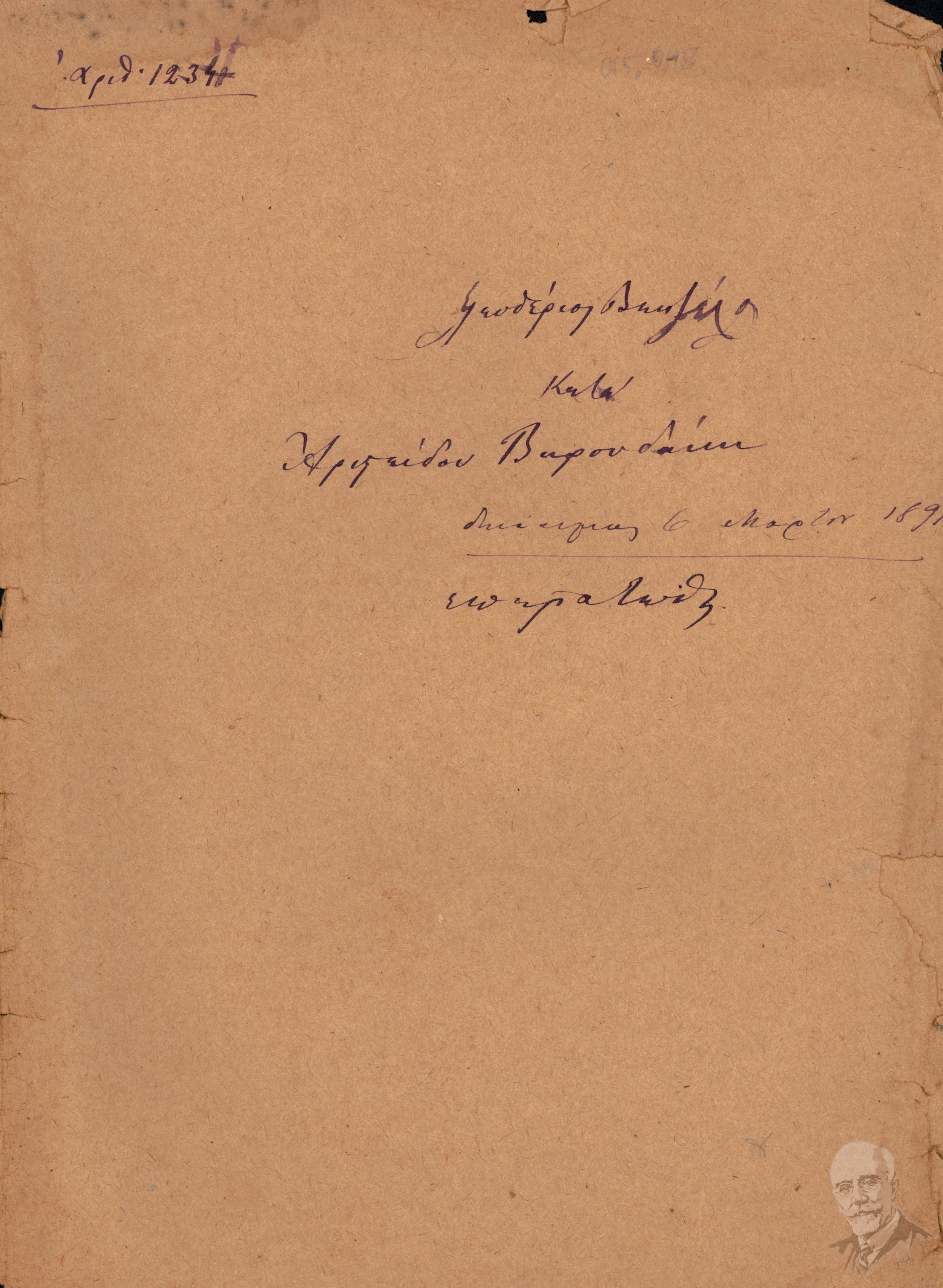 | ΤΙΤΛΟΣ | Φάκελος δικογραφίας με αριθμό 1234, Ελευθέριος Βενιζέλος κατά Αριστείδου Βαρουδάκη |