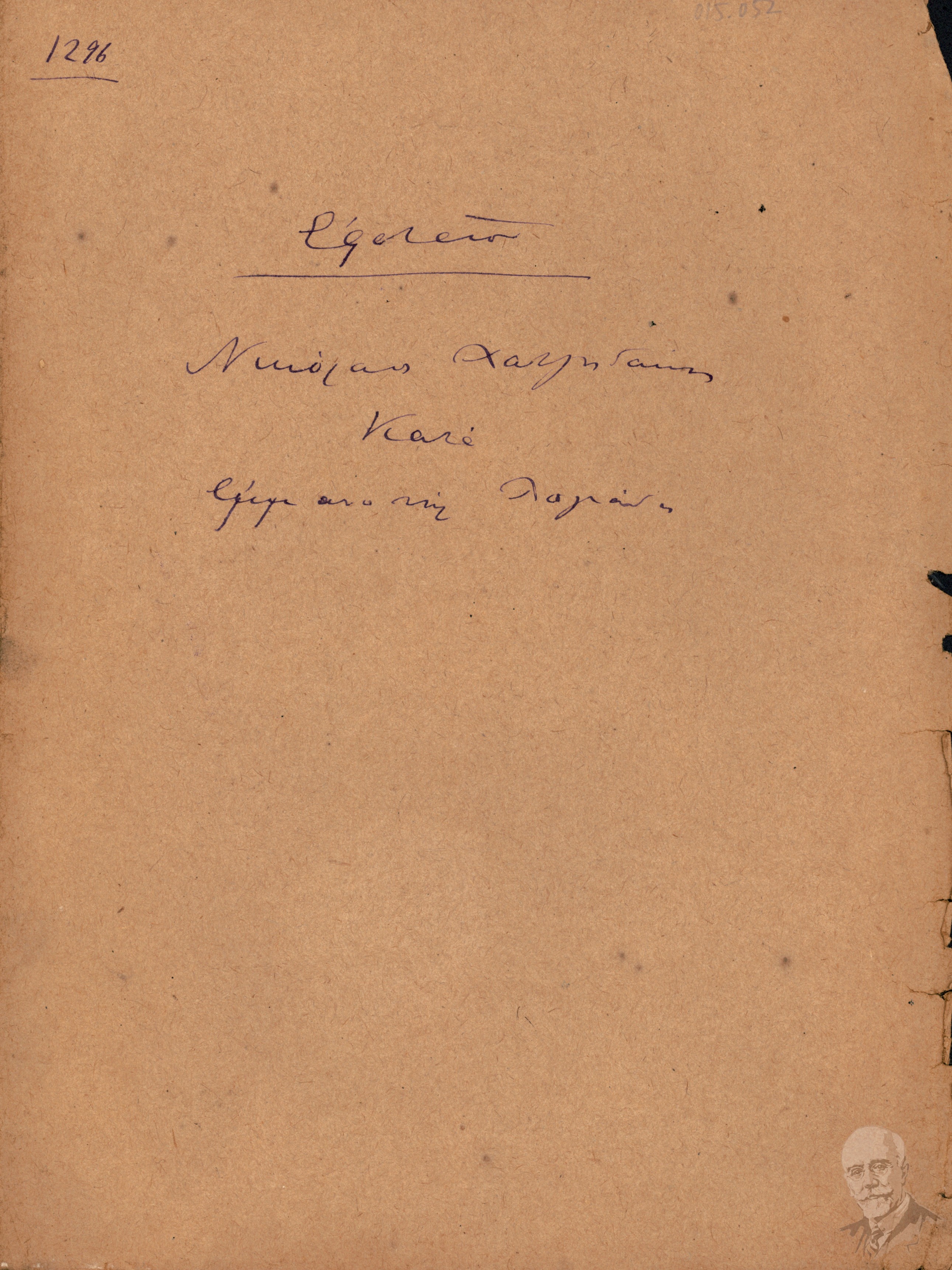 | ΤΙΤΛΟΣ | Φάκελος δικογραφίας με αριθμό 1296, Εφετείο, Νικόλαος Χατζηδάκης κατά Εμμανουήλ Λογιάδη. |