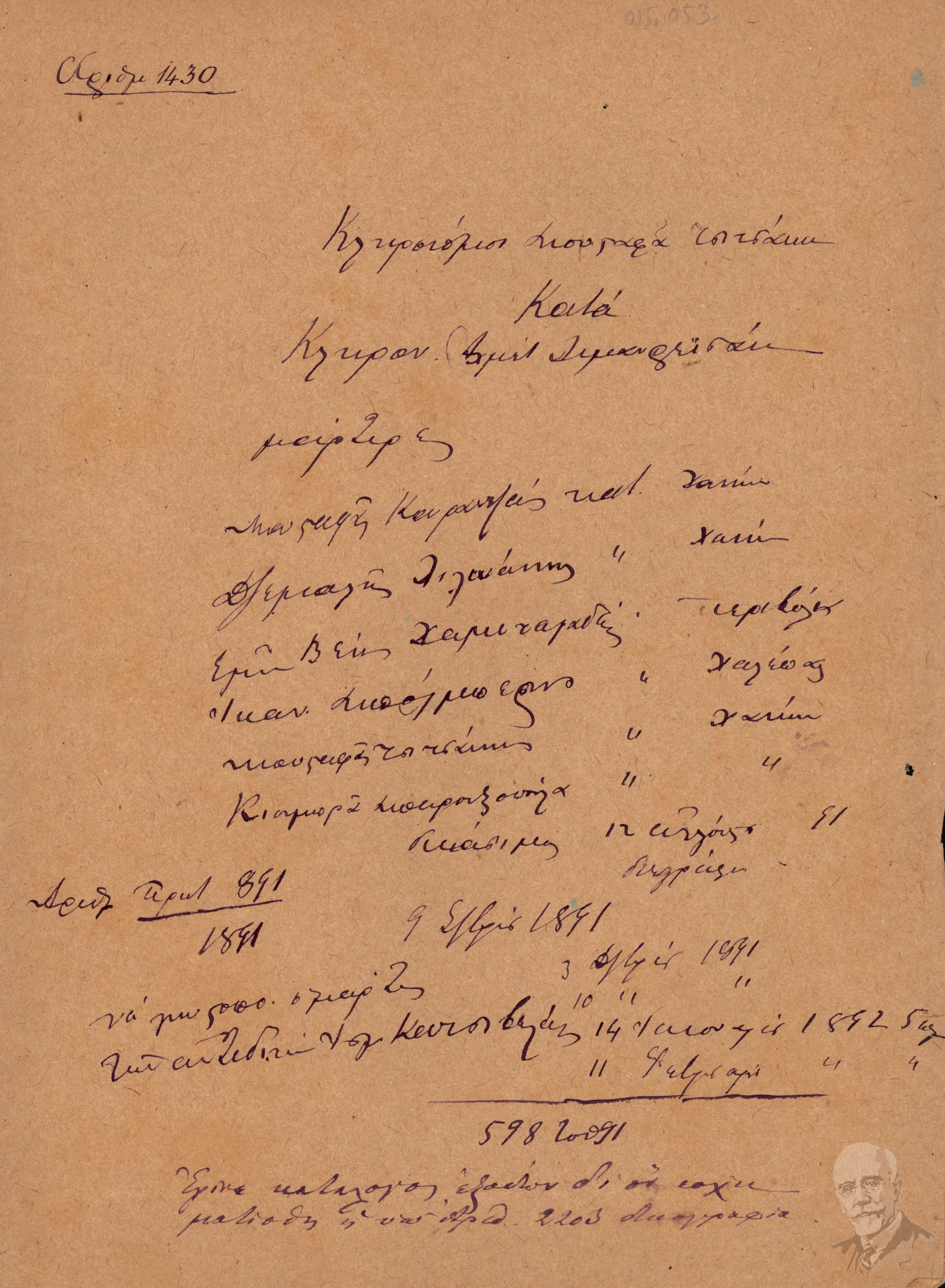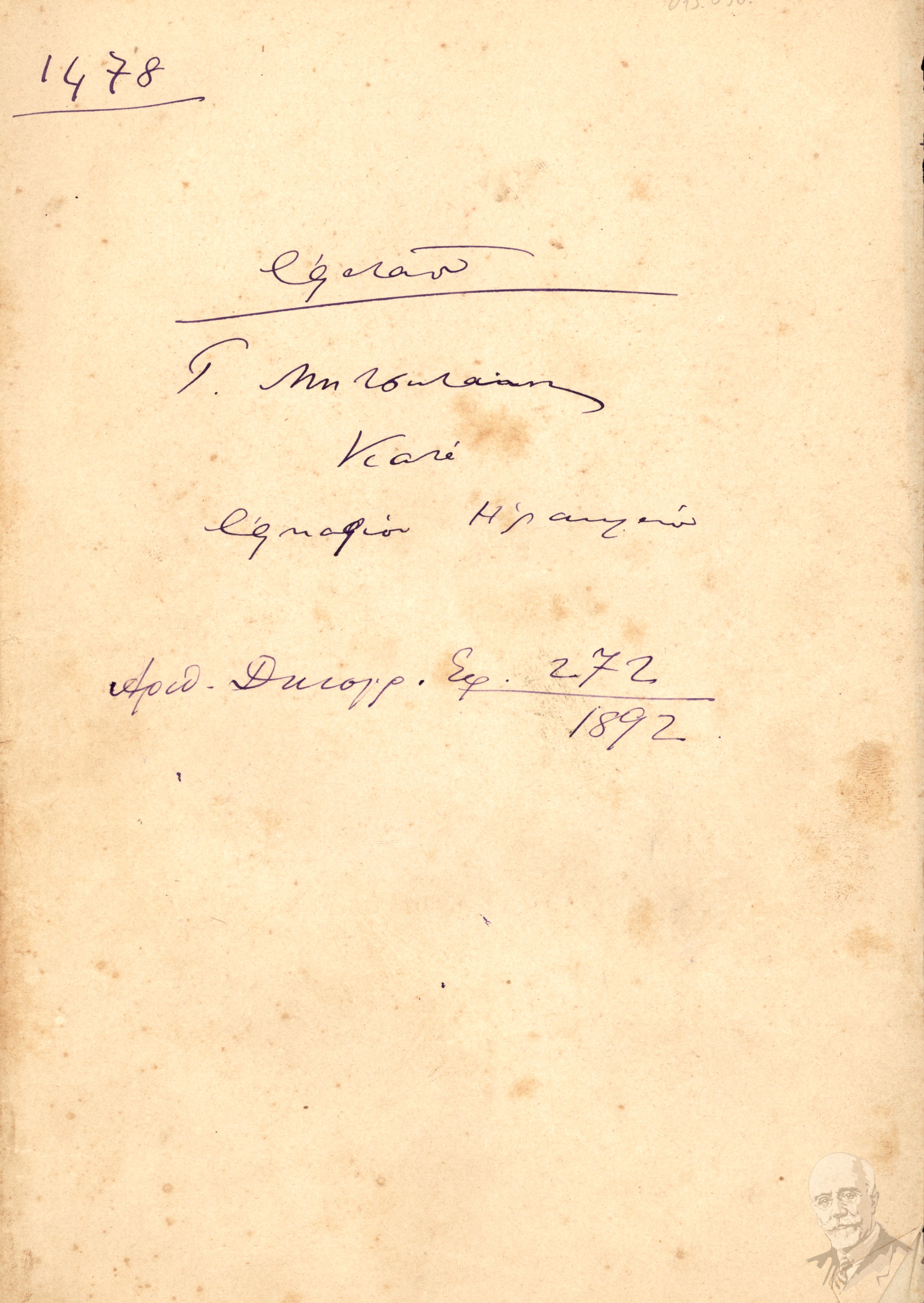 | ΤΙΤΛΟΣ | Φάκελος δικογραφίας με αριθμό 1478, Εφετείο, Γ. Μητσοτάκης κατά Εφκαφίου Ηρακλείου. Αριθ. Δικογρ. Εφ. 272/1892 |