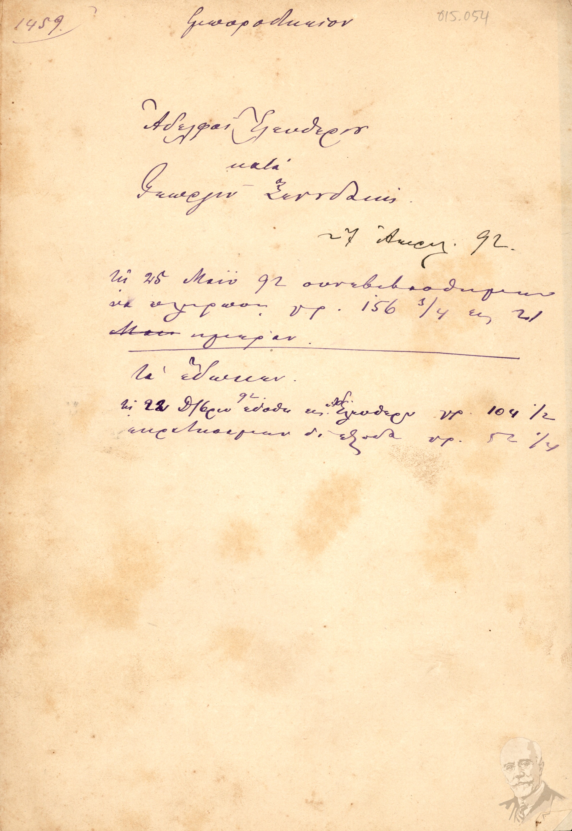 | ΤΙΤΛΟΣ | Φάκελος δικογραφίας με αριθμό 1459, Εμποροδικείο. Αδελφοί Ελευθερίου κατά Γεωργίου Ξενουδάκη, 27 Απριλ. 92. |
