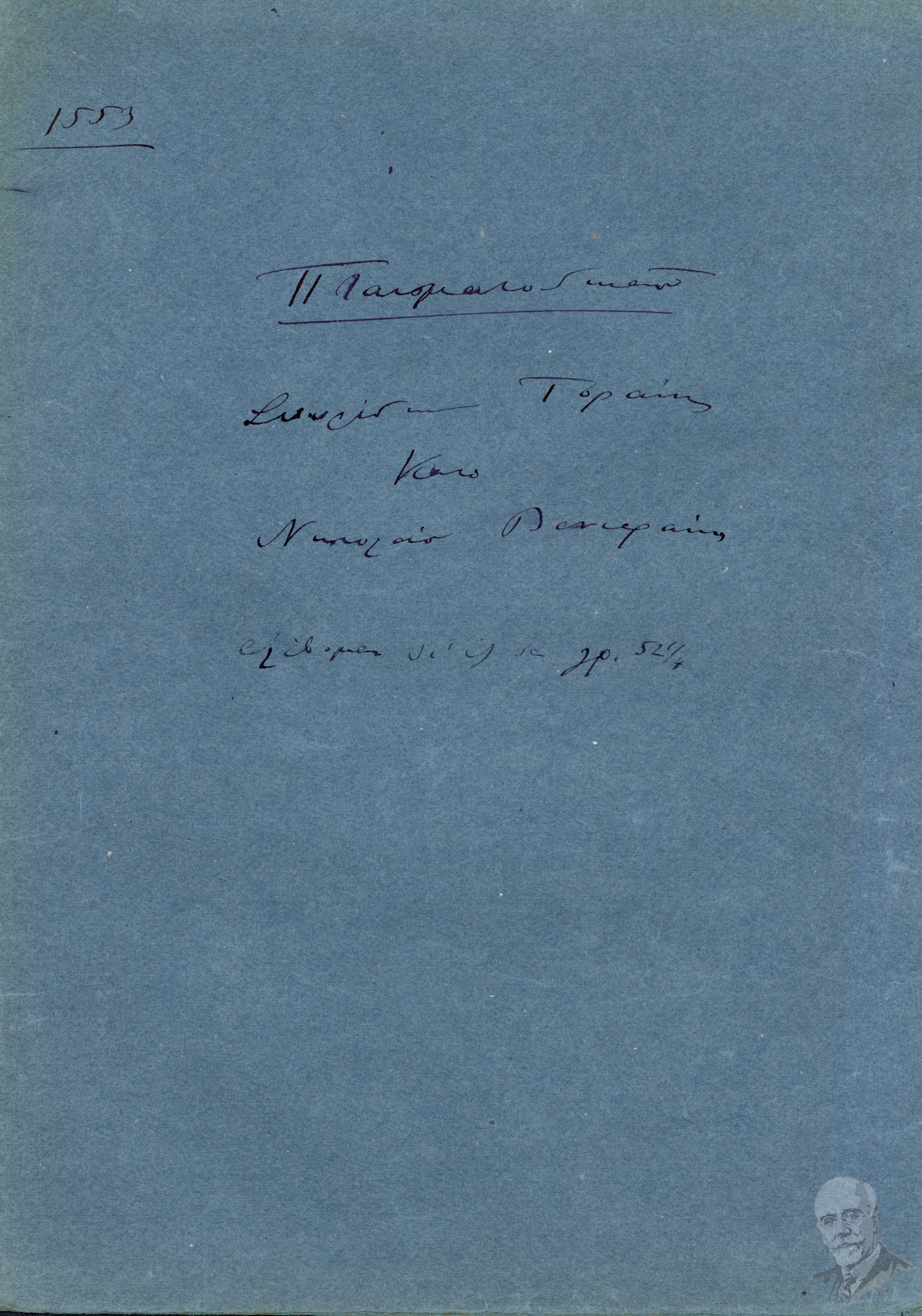 | ΤΙΤΛΟΣ | Φάκελος δικογραφίας με αριθμό 1553, Πταισματοδικείο, σπυρίδων Τοράκης κατά Νικολάου Βενιεράκη. |