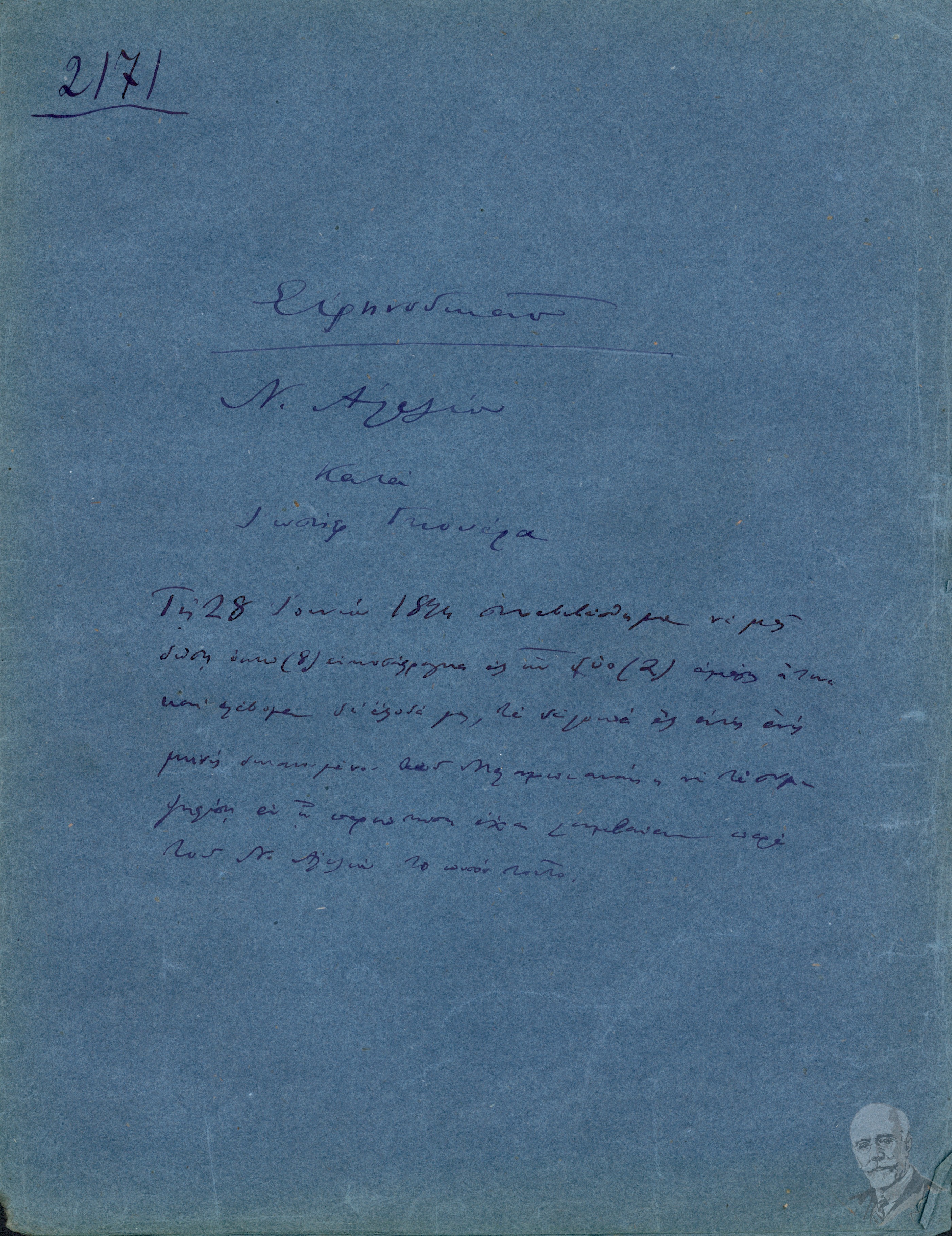 | ΤΙΤΛΟΣ | Φάκελος δικογραφίας με αριθμό 2171, Ειρηνοδικείο, Ν. Αλεξίου κατά Ιωσήφ Γκουέρα. |