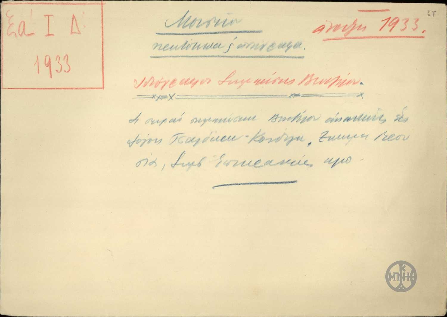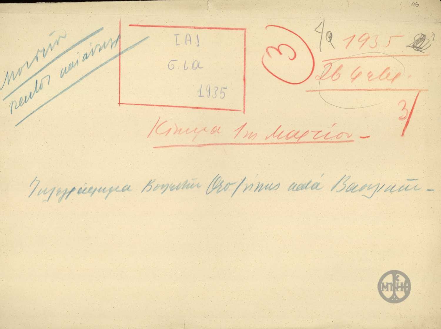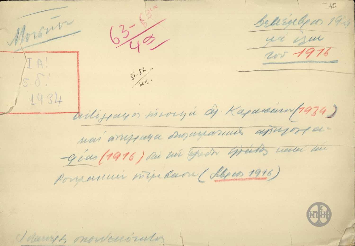 | ΤΙΤΛΟΣ | Σημείωμα φακέλου που αναγράφει:"Δεκέμβριος 1934, 1916." |