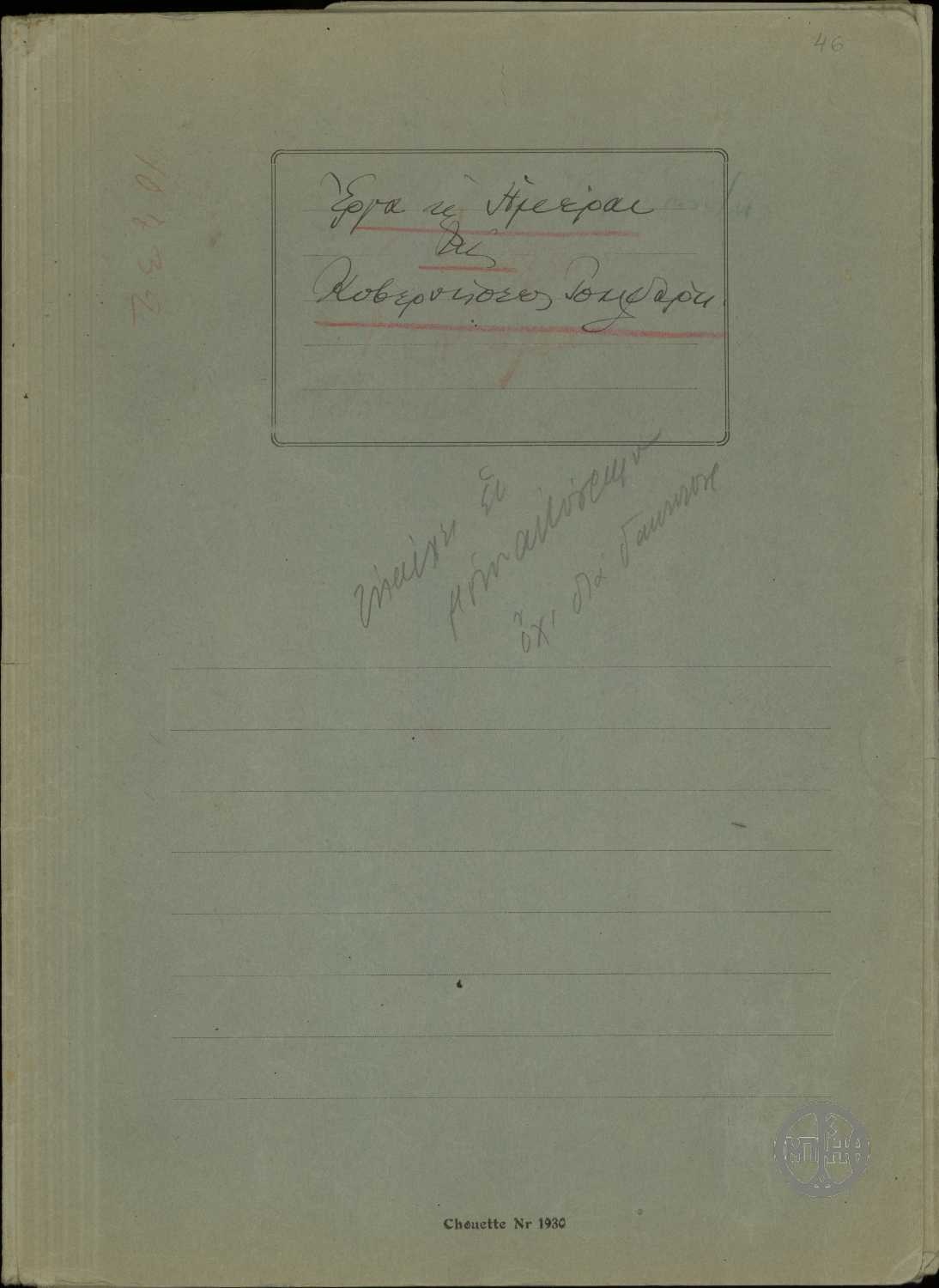 | ΤΙΤΛΟΣ | Φάκελος στον οποίο αναγράφεται "Έργα και Ημέραι της Κυβερνήσεως Τσαλδάρη". |