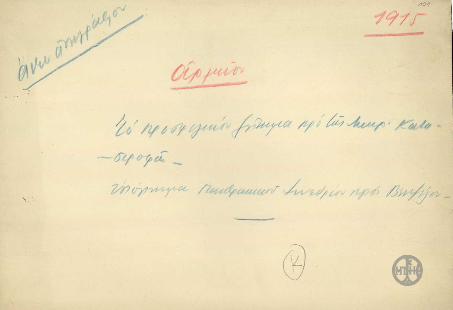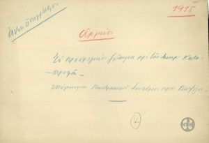 | ΤΙΤΛΟΣ | Σημείωμα φακέλου που αναγράφει: " 1915. Το προσφυγικό ζήτημα προ της Μικρ. Καταστροφής. Υπόμνημα Πανθρακικού Συνεδρίου προς Βενιζέλο." |