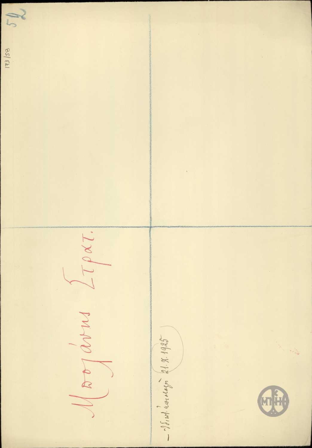| ΤΙΤΛΟΣ | Σημείωμα φακέλου που αναγράφει:"Μπολάνης Στρατ. Ιδιωτ. επιστολή 21.Χ.1925." |