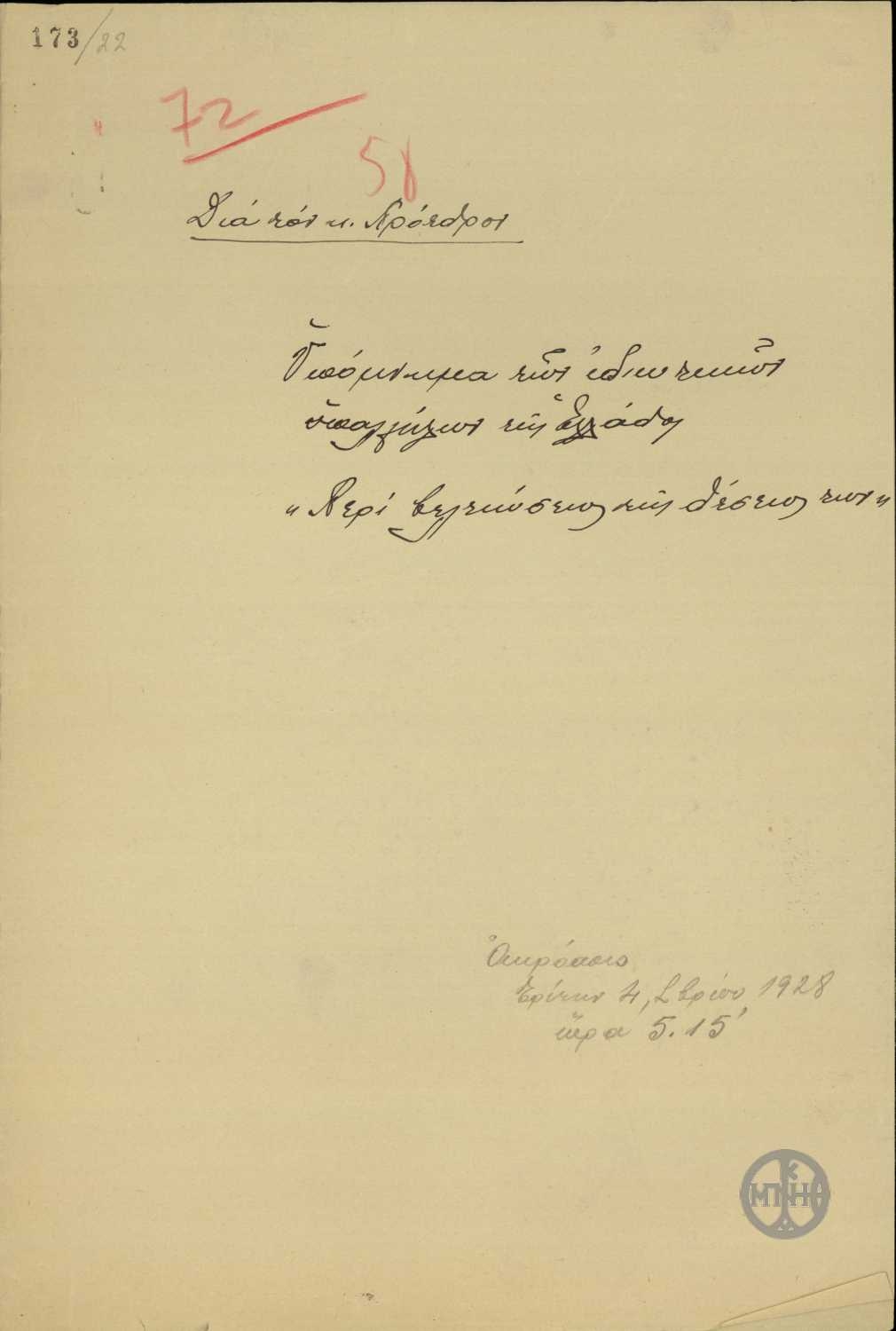 | ΧΡΟΝΟΛΟΓΙΑ | [1928] |