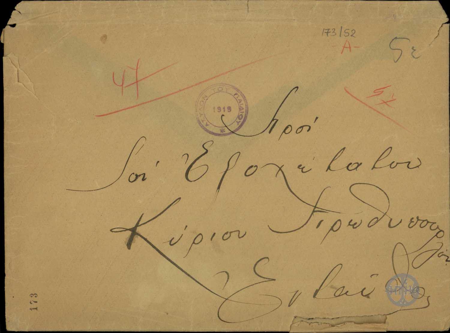 | ΤΙΤΛΟΣ | Επιστολικός φάκελος της εταιρείας "Εργοληπτικής" προς τον πρόεδρο του υπουργικού Συμβουλίου Ε.Βενιζέλου |