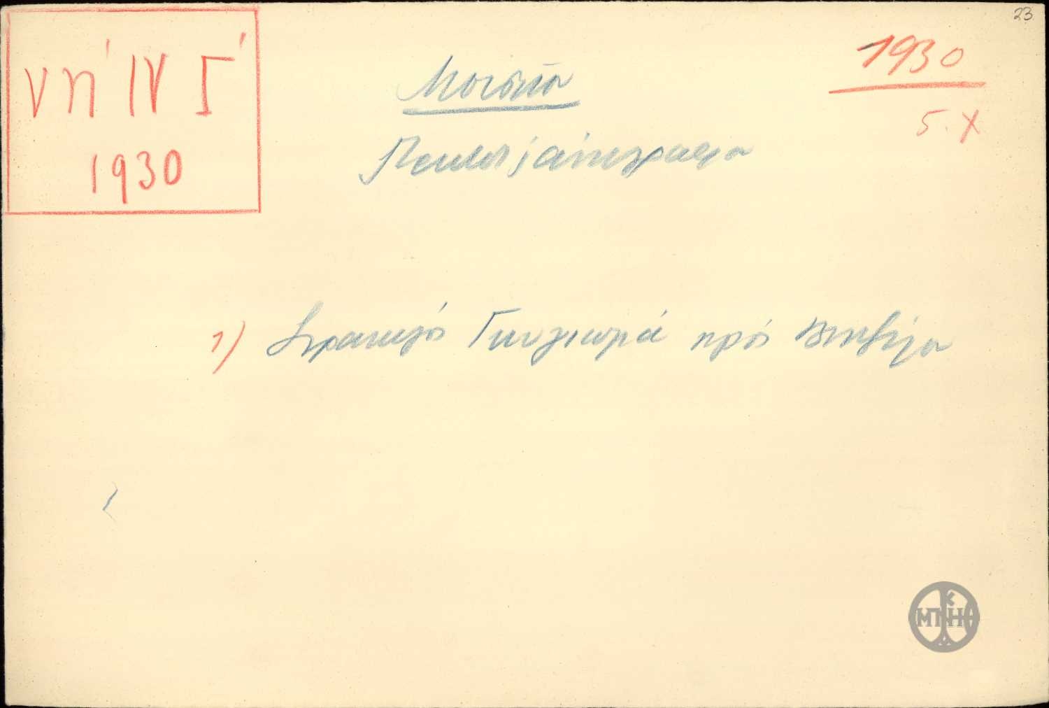 | ΧΡΟΝΟΛΟΓΙΑ | 1930 |