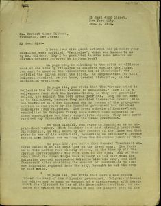 Επιστολή του Theodore P. Ion προς τον dr. Herbert Adams Gibbons στην οποία του διατυπώνει τις παρατηρήσεις του σχετικά με το βιβλίο του με τίτλο "Venizelos".