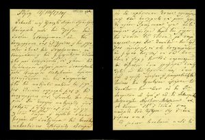 | ΤΙΤΛΟΣ | Επιστολή της Ελένης Μαυρομμάτη προς τον Ελευθέριο Βενιζέλο σχετικα με ήττα του Βενιζέλου στις εκλογές της 1ης Νοεμβρίου 1920 και την αναχώρησή του για τη Νίκαια, καθώς και το θάνατο του συζύγου της. |