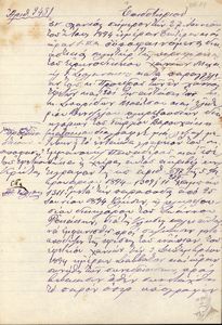 | Τίτλος (Υπόθεση) | Επιδοτήριο με αριθμό 1581 του Χαράλαμπου Πολογιωργάκη ως πληρεξουσίου της Ελισάβετ Ασκιτοπούλας προς τον Σωκράτη Καψομενάκη προκειμένου να παραστεί στο δικαστήριο για συζήτηση υπόθεσής τους. |