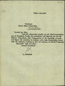 | ΤΙΤΛΟΣ | Επιστολή προς τον Σ. Βενιζέλο σχετικά με χρηματικές συναλλαγές του. |
