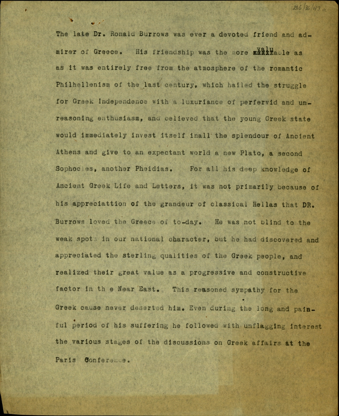 ΤΙΤΛΟΣ | Σημείωμα σχετικά με τον δρ. Ronald Burrows, τη σχέση του με την Ελλάδα και την άποψή του για το ρόλο του ελληνικού λαού στην ανάπλαση της Ανατολής. |