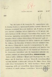 | ΤΙΤΛΟΣ | Επιστολή του C.Moleux προς τον Α. Ζαΐμη σχετικά με ποσά που πιστώθηκαν στην Εθνική Τράπεζα της Ελλάδας από το Γαλλικό Θησαυροφυλάκιο την περίοδο 4-31 Μαρτίου του 1919. |