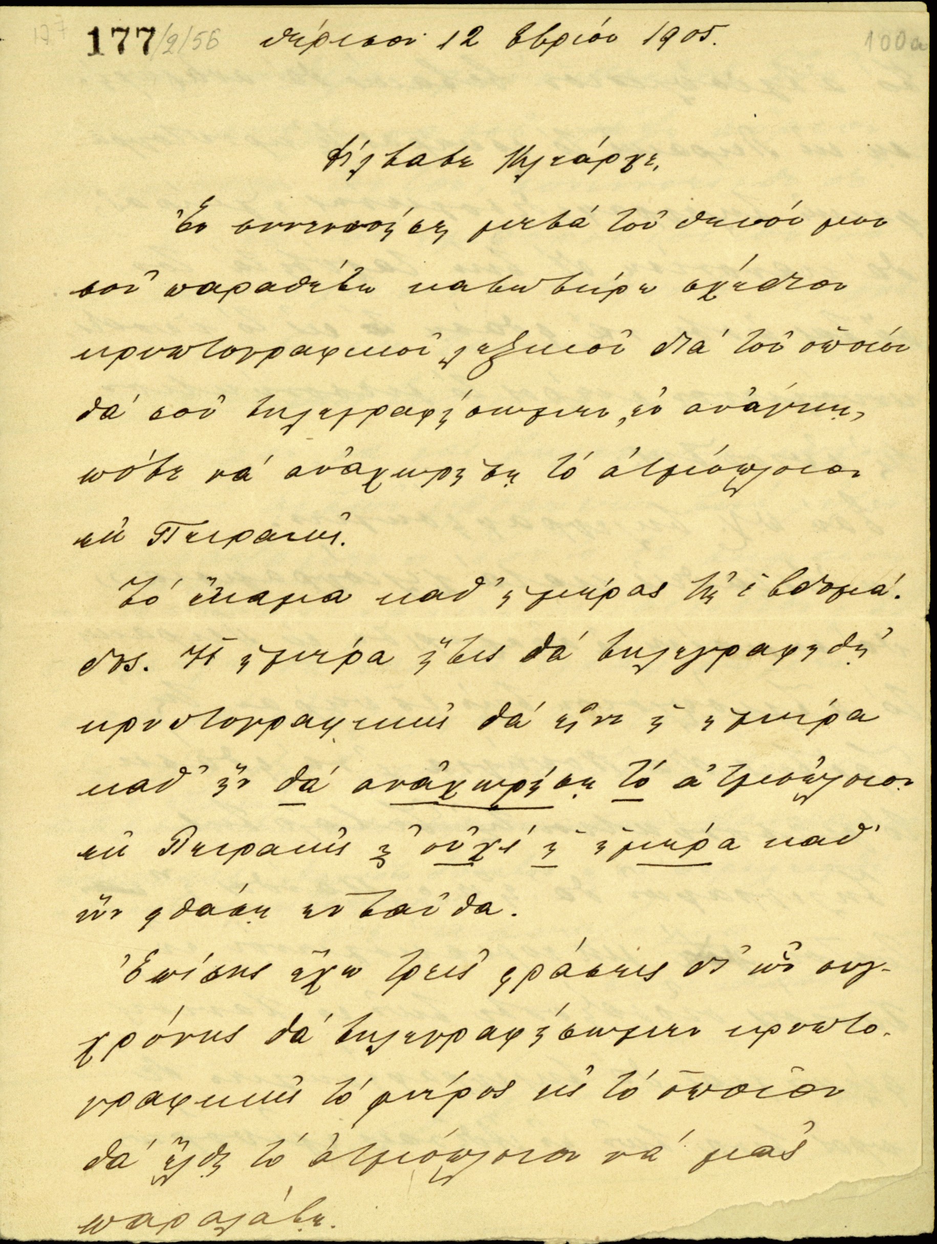 | ΤΙΤΛΟΣ | Επιστολή του Γ. Πλουμίδη σχετικά με το ζήτημα της άσκησης του ελέγχου από τις Δυνάμεις. |