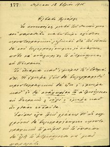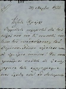 | ΤΙΤΛΟΣ | Επιστολή του Κ. Ελευθερουδάκη προς τον Κλ. Μαρκαντωνάκη σχετικά με την διάθεση των γραμματοσήμων της Επαναστατικής Συνέλευσης Θερίσου. |