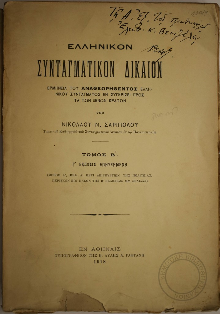 | Κύριος Τίτλος | Σύστημα συνταγματικού δικαίου και γενικού δημοσίου δικαίου |
