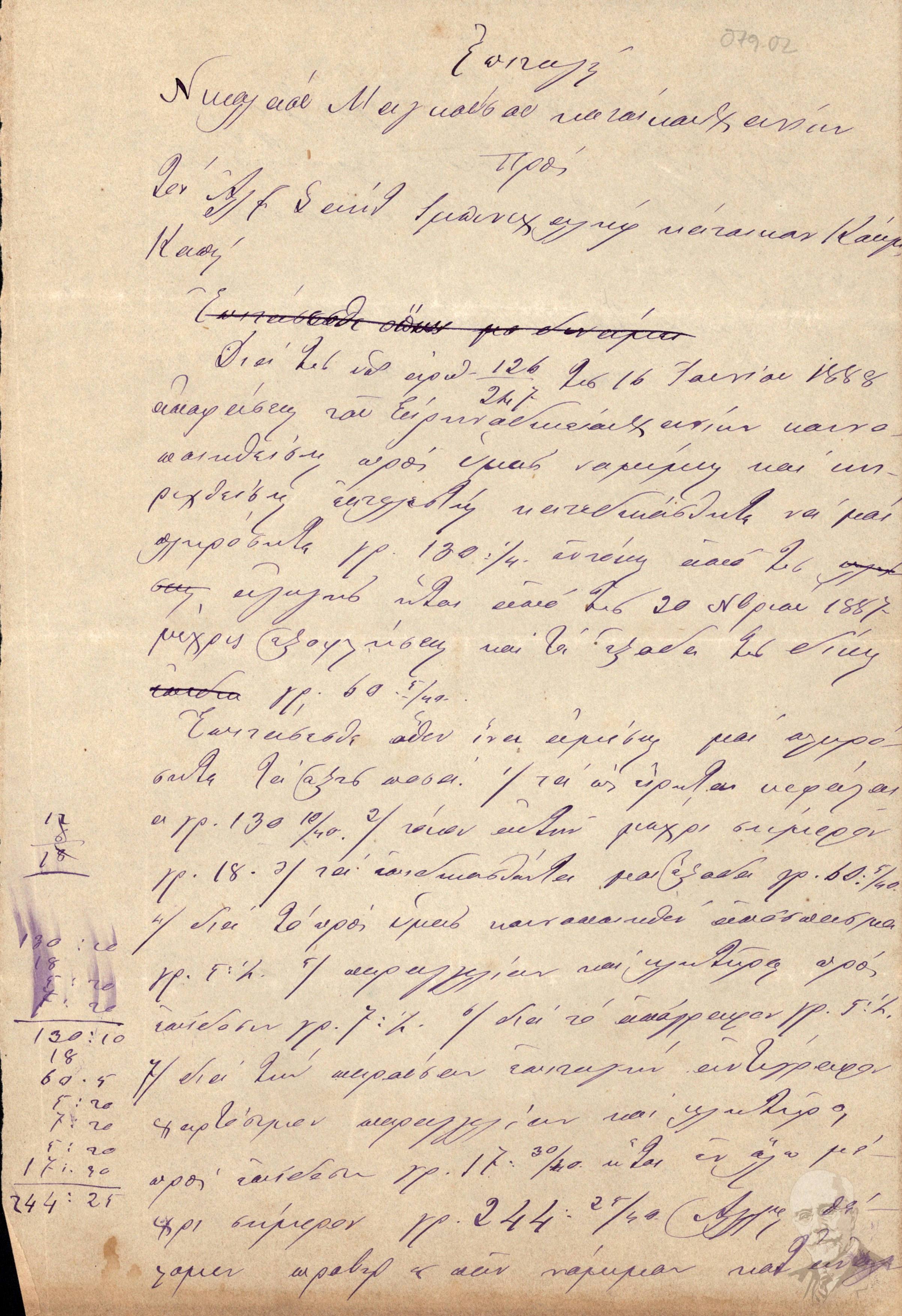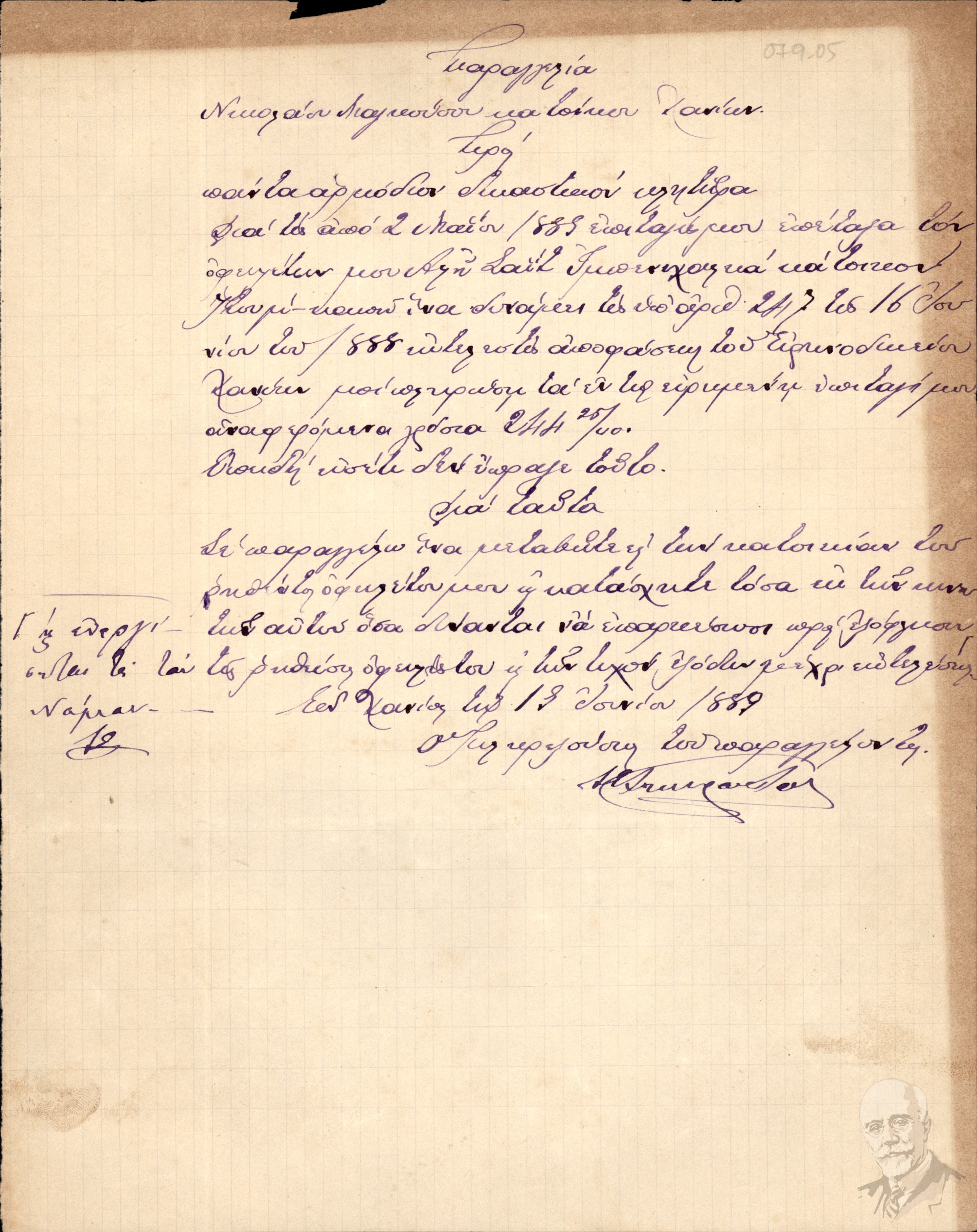 | Τίτλος (Υπόθεση) | Επιταγή του Νικόλαου Μαγκούζου προς τον Αλή Σαϊτ Ιμπενεχαλίφ για ποσό πληρωμής που ορίστηκε από το Ειρηνοδικείο Χανίων στις 16 Ιουνίου 1888. |