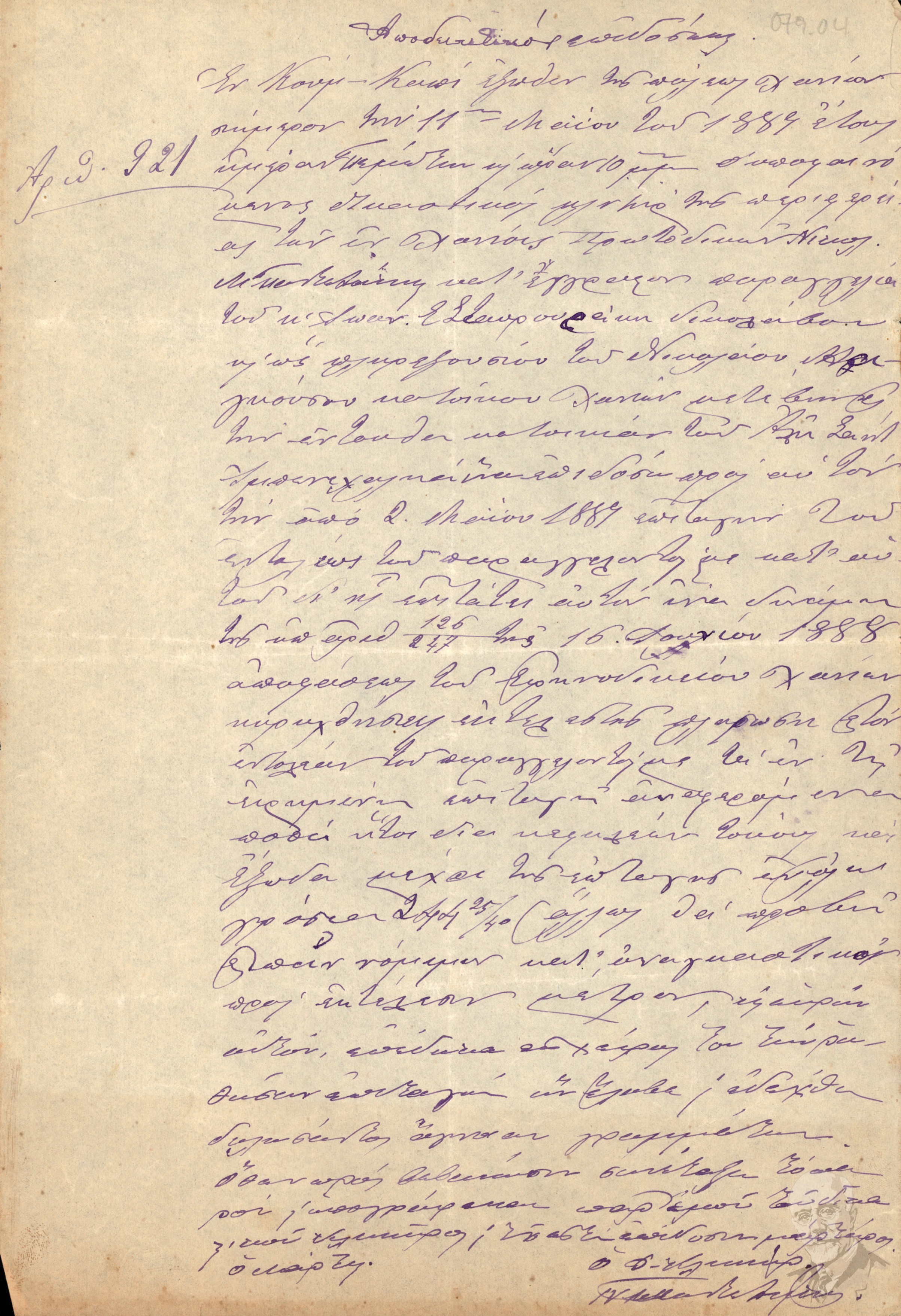 | Τίτλος (Υπόθεση) | Αποδεικτικό επίδοσης με αρ. 921 του πληρεξούσιου του Νικόλαου Μαγκούζου στον Αλή Σαίτ Ιμπνεχαλήφ. |
