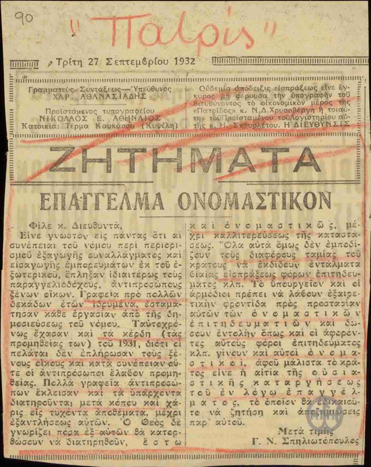 ΧΡΟΝΟΛΟΓΙΑ 1932 Σεπτέμβριος 27