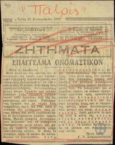 ΕΙΔΟΣ ΕΝΤΥΠΟΥ ΥΛΙΚΟΥ Απόκομμα εφημερίδας, περιοδικού