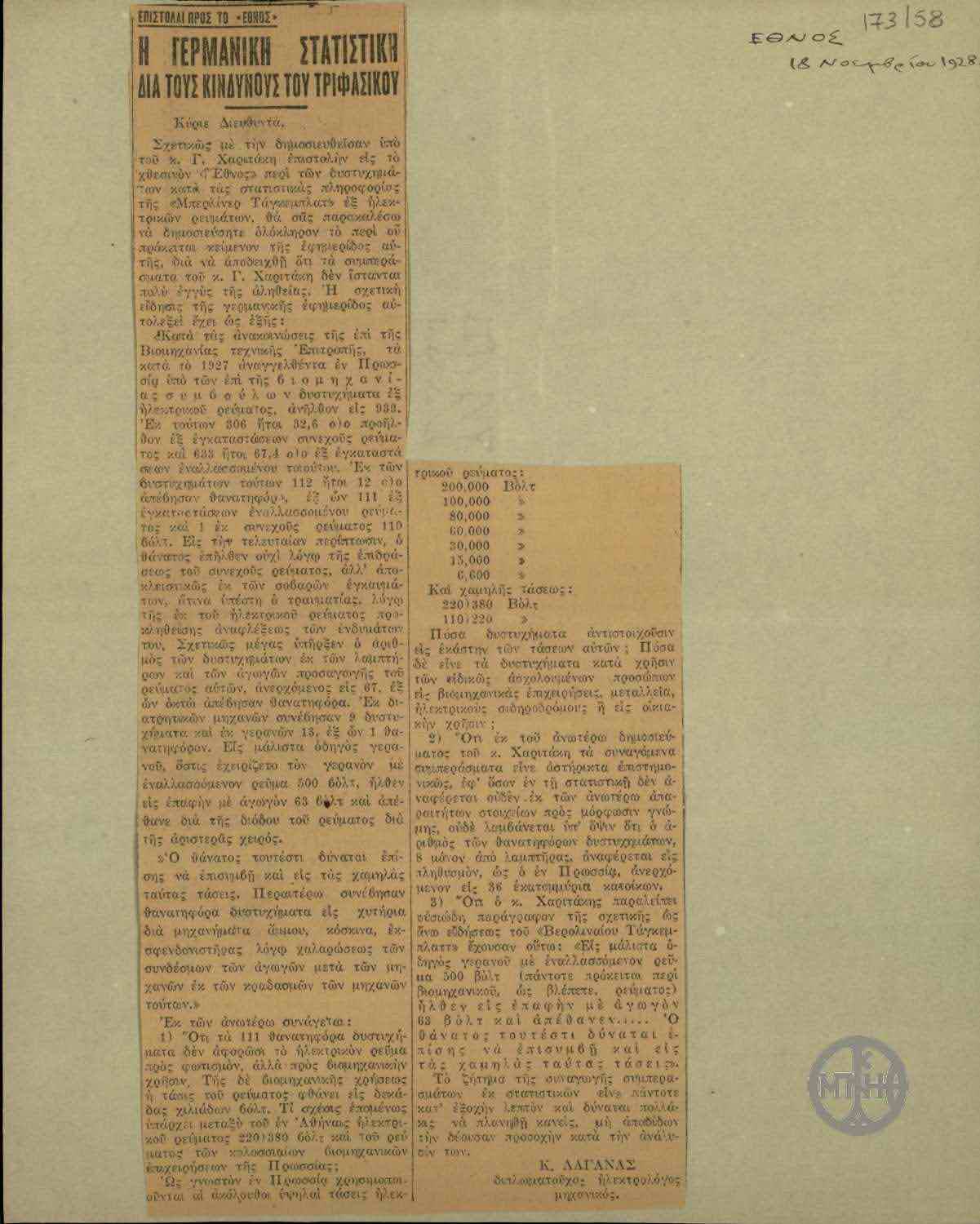 • Όρος: Λαγανάς Κ. ηλεκτρολόγος μηχανικός