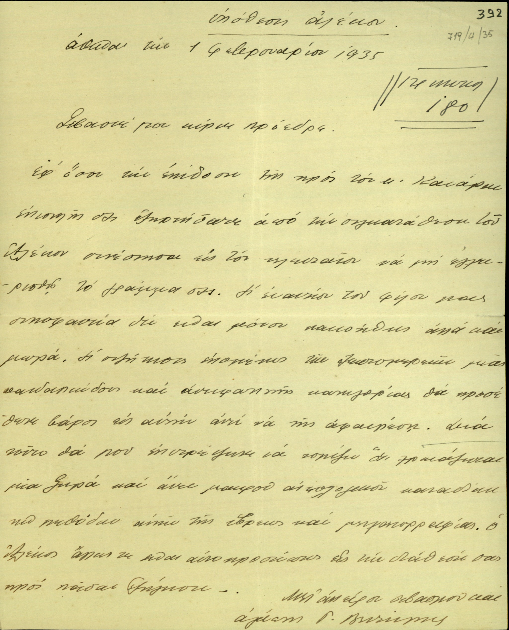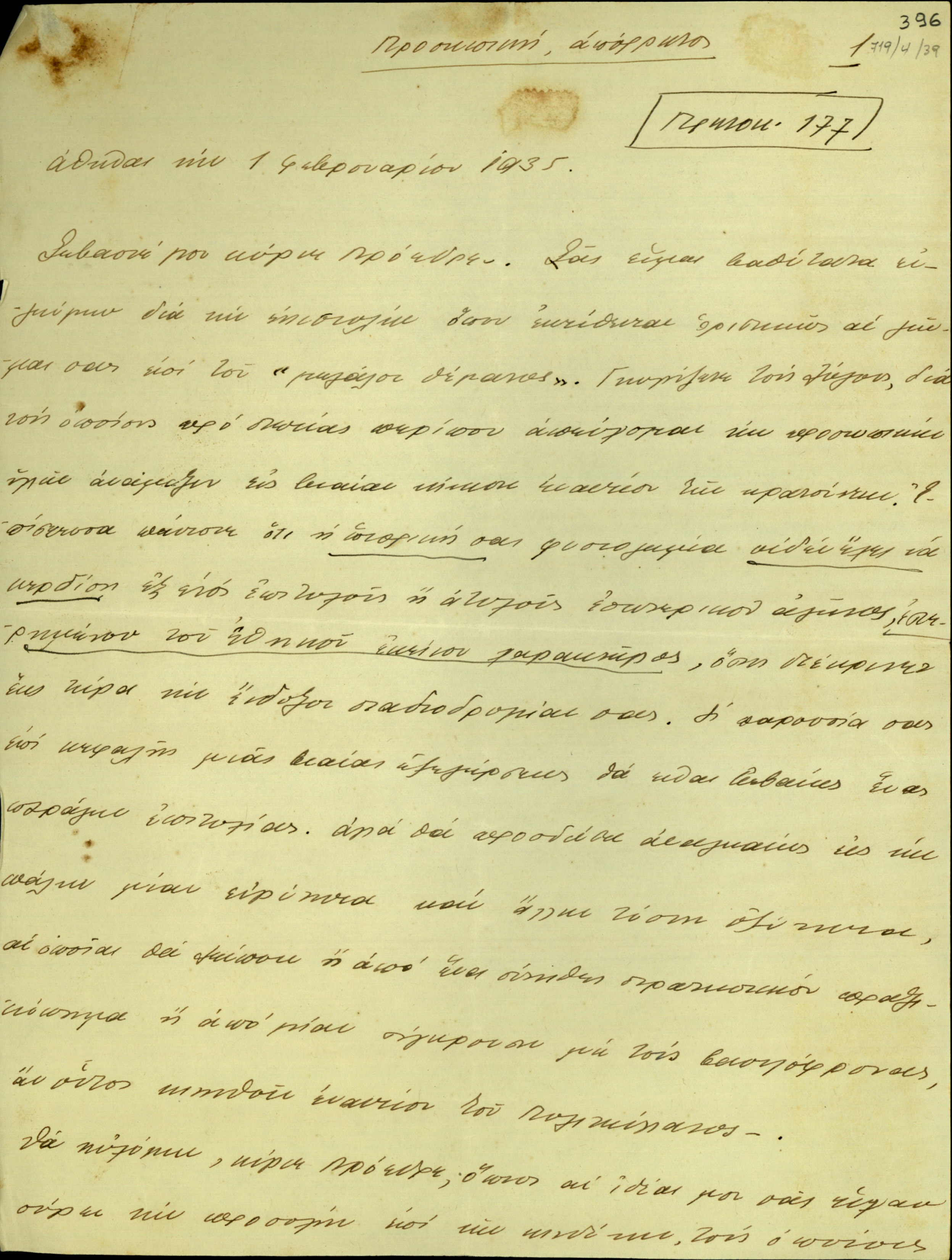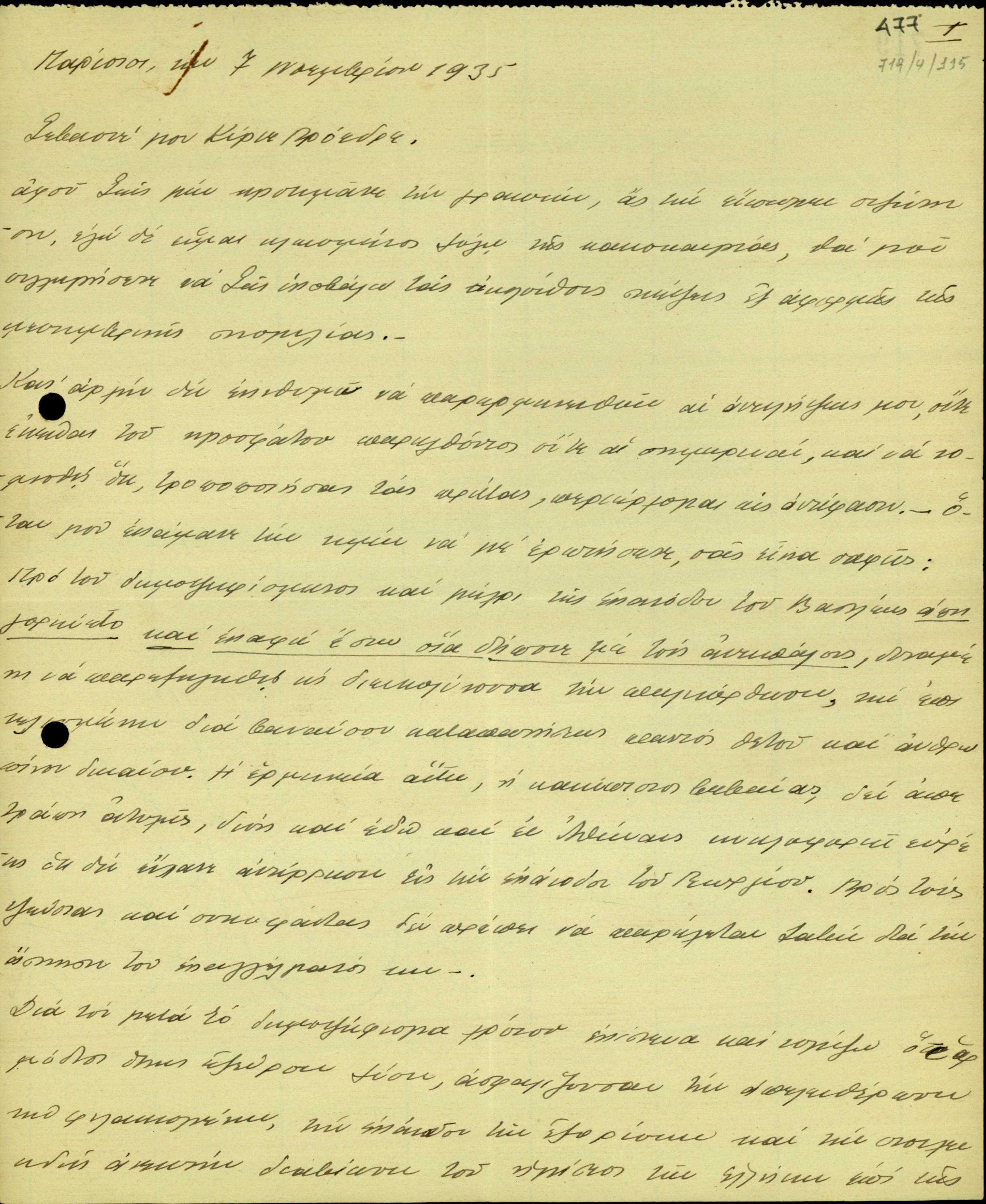 | ΤΙΤΛΟΣ | Επιστολή του Γεωργίου Βεντήρη προς τον Ελευθέριο Βενιζέλο σχετικά με το κίνημα του 1935. |