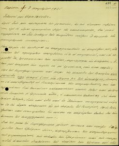 | ΤΙΤΛΟΣ | Σημείωμα του Γ.Βεντήρη σχετικά με αναγραφόμενη ημερομηνία (17 Σεπτέμβριου 1934) σε επιστολή του Καφαντάρη την οποία θεωρεί προφανώς εσφαλμένη. |