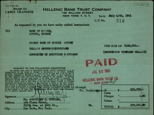 | ΤΙΤΛΟΣ | Απόδειξη της Hellenic Bank Trust Company σχετικά με την υπόθεση της αγοράς της θαλαμηγού του Βασιλιά. |