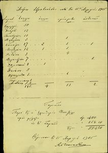 | ΤΙΤΛΟΣ | Πίνακας του Ν. Παπαδάκη με χρηματικά ποσά που αφορούν σε έξοδα του ταμείου της Επαναστατικής Συνέλευσης Θερίσου. |
