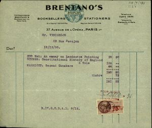| ΤΙΤΛΟΣ | Τιμολόγιο της Brentano' s προς τον Ελ. Βενιζέλο σχετικά με την αγορά βιβλίου. |
