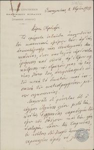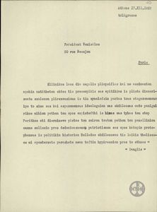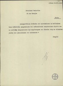 | ΤΙΤΛΟΣ | Επιστολή του Π.Γ.Δαγκλή προς τον Ε.Βενιζέλο σχετικά με τις εκκρεμότητες του έθνους. |