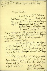 | ΤΙΤΛΟΣ | Επιστολή του Ευστρ. Κουλουμβάκη προς τον Ε. Βενιζέλο σχετικά με τις επικείμενες γερουσιαστικές εκλογές. |